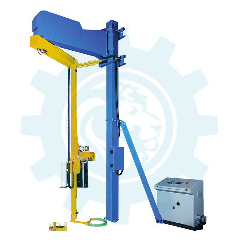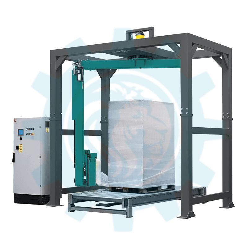 - چرخش دکل به دور پالت و اتصال فیلم استرچ به یک بخش از آن سبب ایجاد کشش در سلفون و پیچیده شدن آن به دور پالت ها و محصولات می شود.